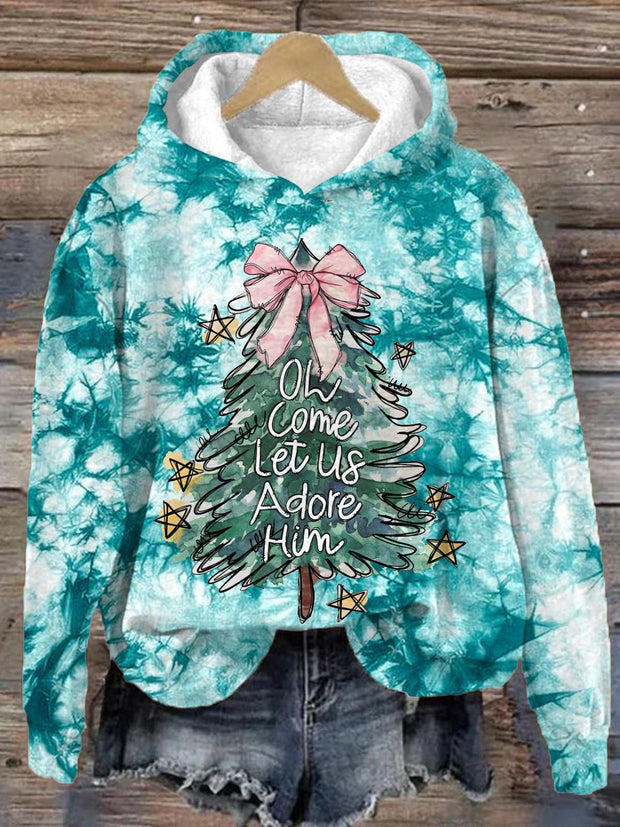 Oh Come Let Us Adore Him Long Sleeve Printed Hoodie
