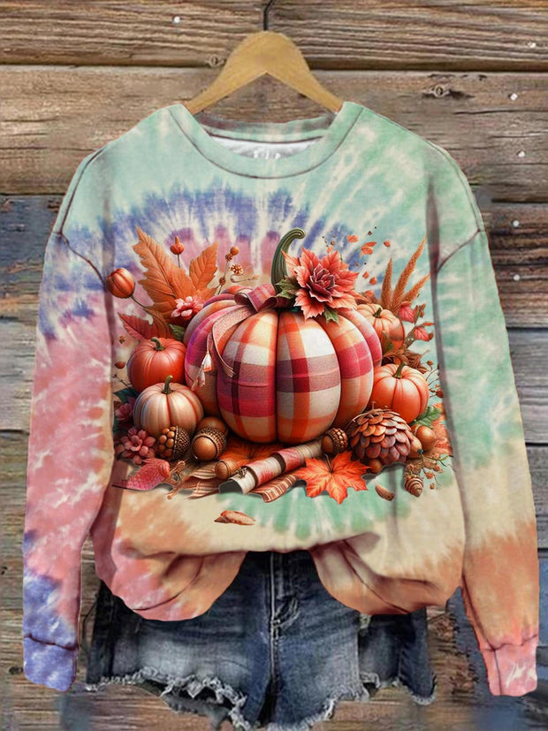 Women's Fall Pumpkin Harvest Tie Dye Print Casual Long Sleeve Top