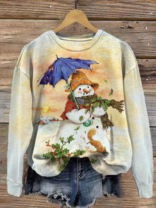 Women's Frosty Retro Snowman Round Neck Long Sleeve Top