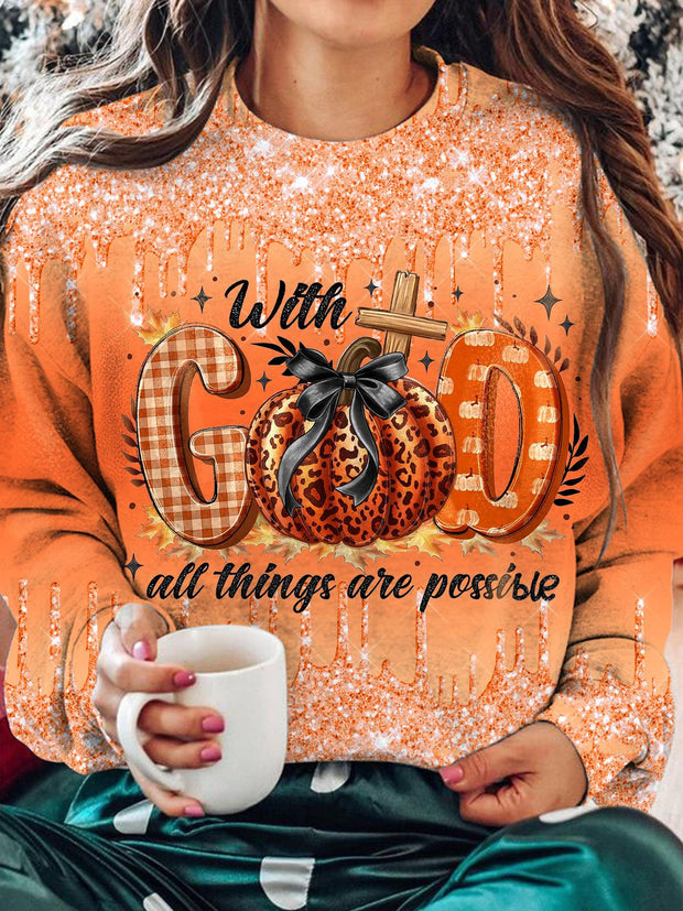 Women's God Halloween Pumpkin Gradient Print Casual Long Sleeve Top