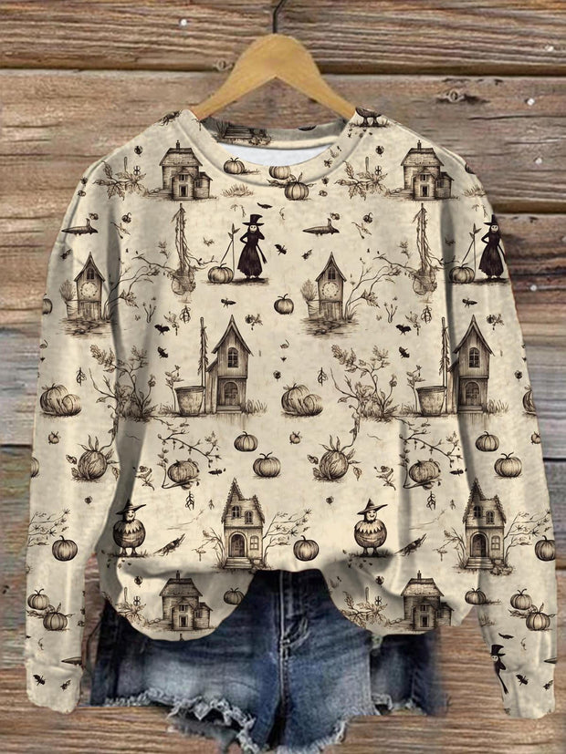 Women's Vintage Halloween Witch Scarecrow Casual Sweatshirt