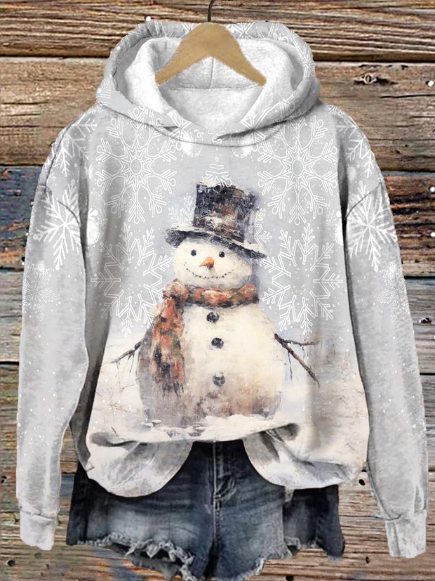 Women's Winter Christmas Snowman Long Sleeve Printed Hoodie
